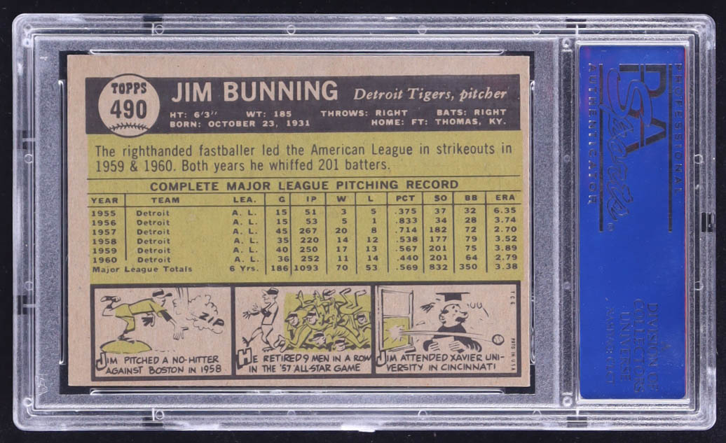 Jim Bunning 1961 Topps #490 (PSA 7)