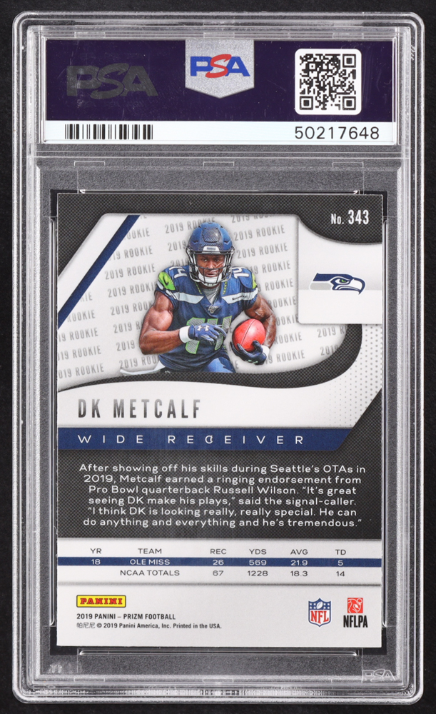 D.K. Metcalf 2019 Panini Prizm #343 RC (PSA 10)
