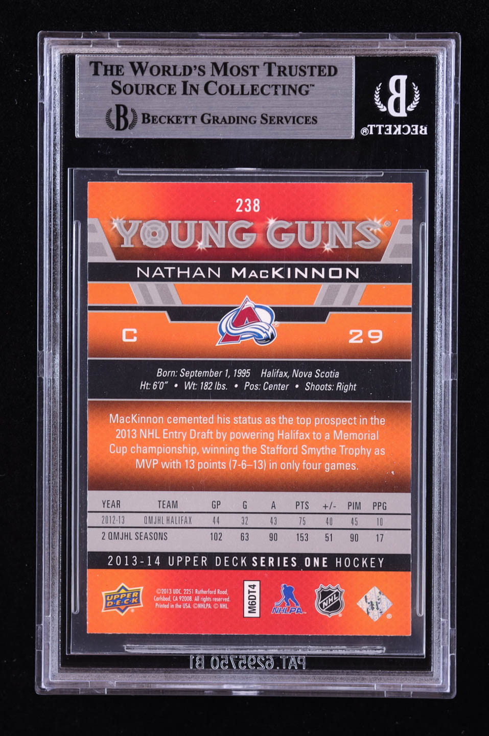 Nathan MacKinnon Signed 2013-14 Upper Deck #238 YG RC (BGS)