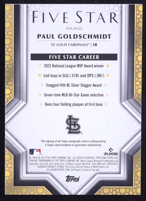 Paul Goldschmidt 2023 Topps Five Star Autographs Blue #FSAPGO #24/25