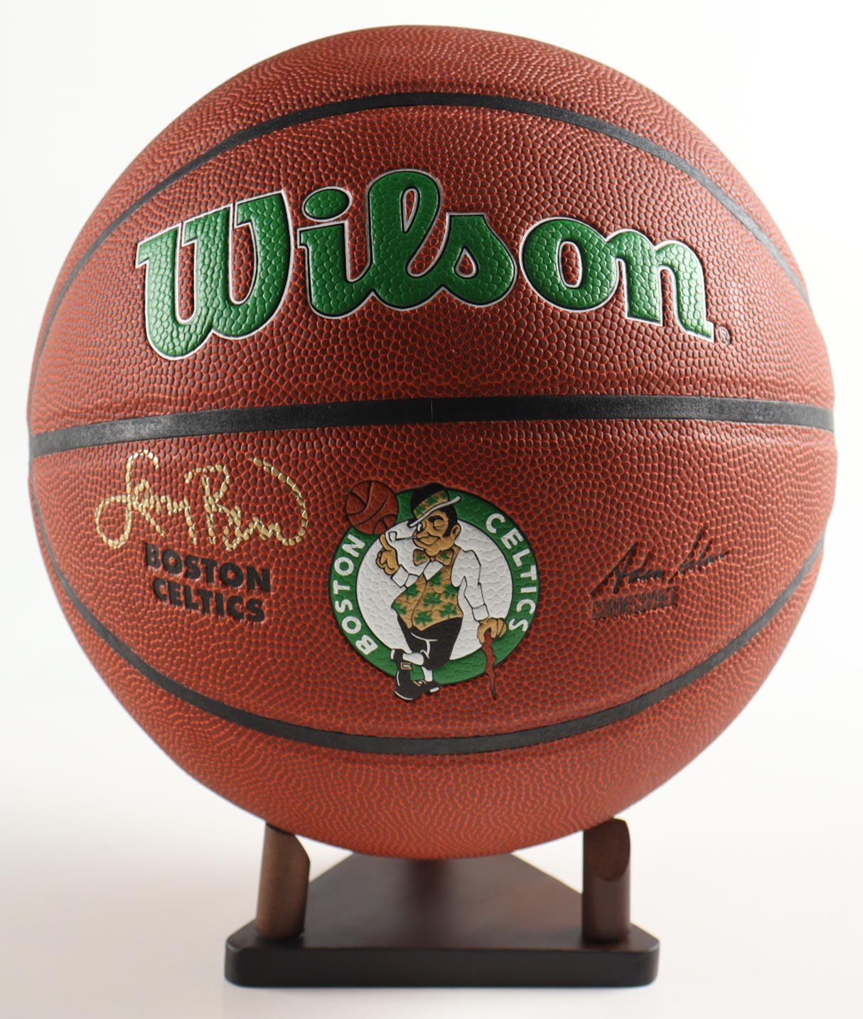 Wilson Boston Celtics logo basketball has been hand-signed by Larry Bird (HOF). The display stand is included as shown.