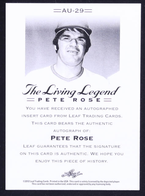 Pete Rose 2012 Leaf Pete Rose The Living Legend Autographs #AU29