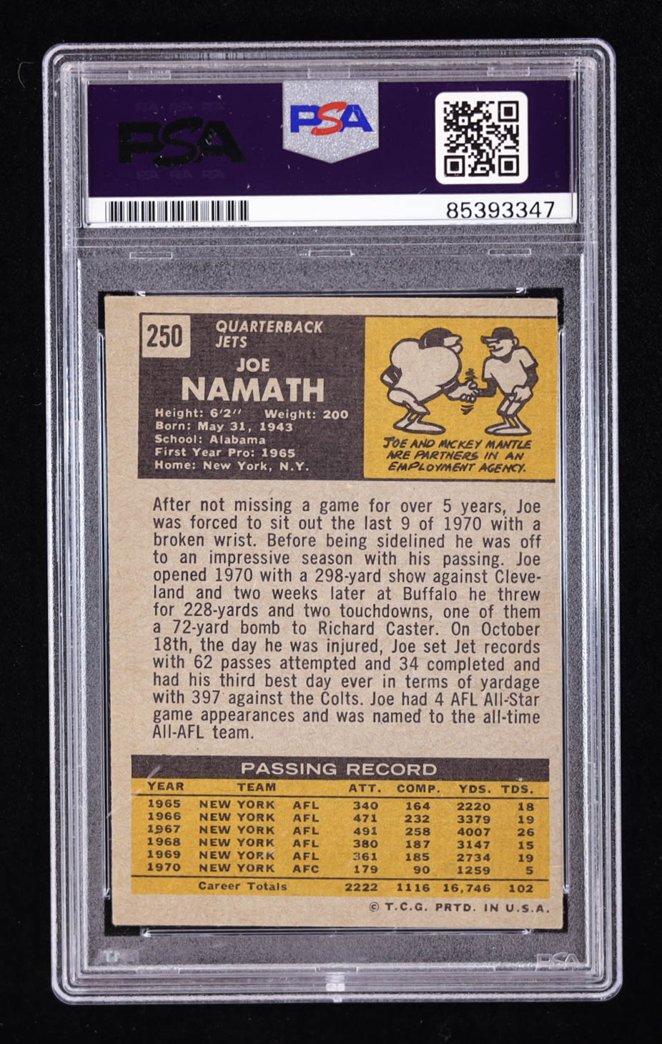 Joe Namath Signed 1971 Topps #250 (PSA | Autograph Graded PSA 10)