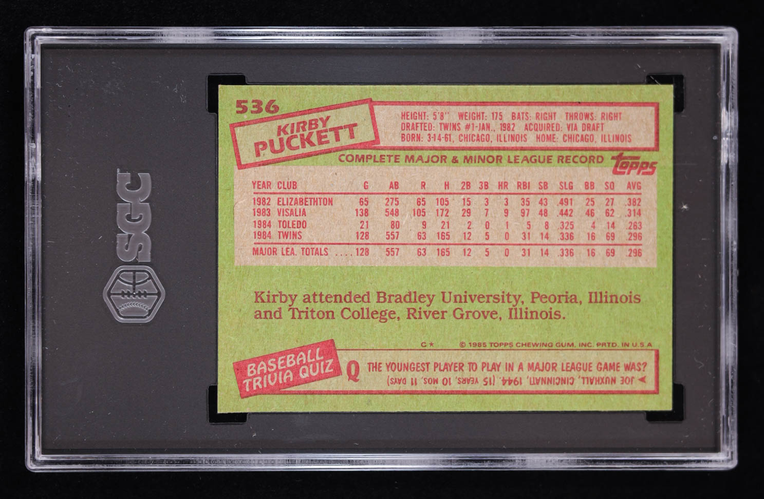Kirby Puckett 1985 Topps #536 RC (SGC 8.5)