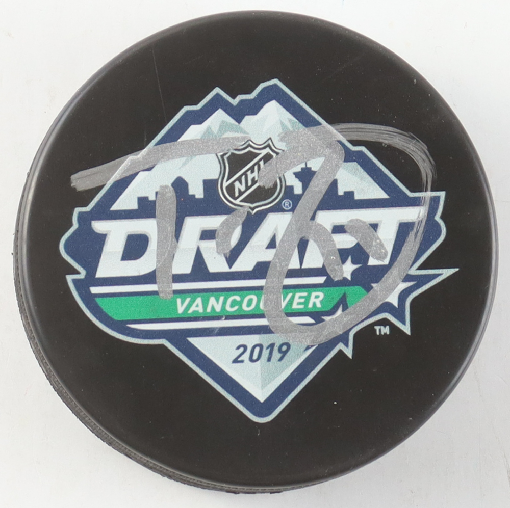 Trevor Zegras Signed 2019 NHL Draft Logo Hockey Puck (Beckett)