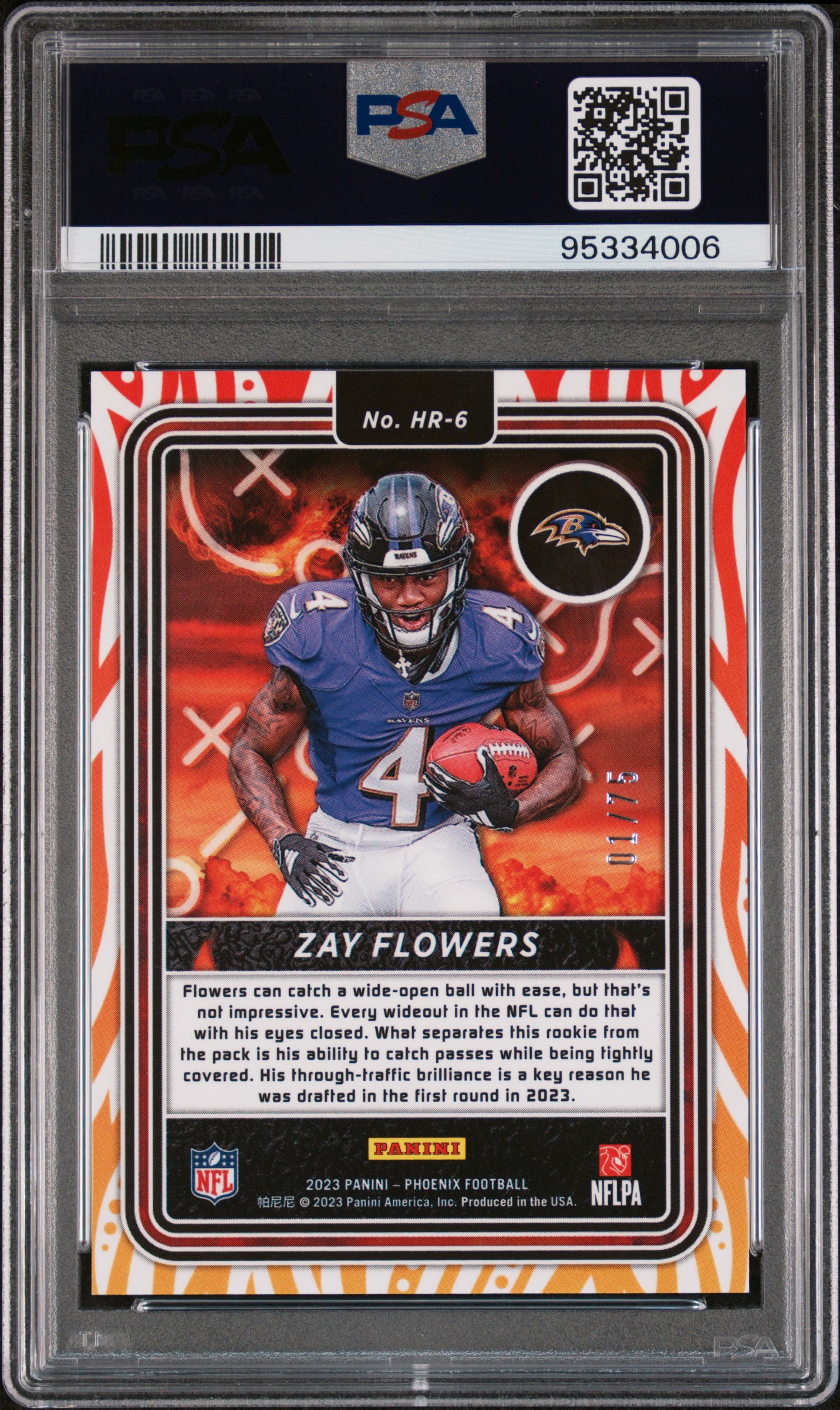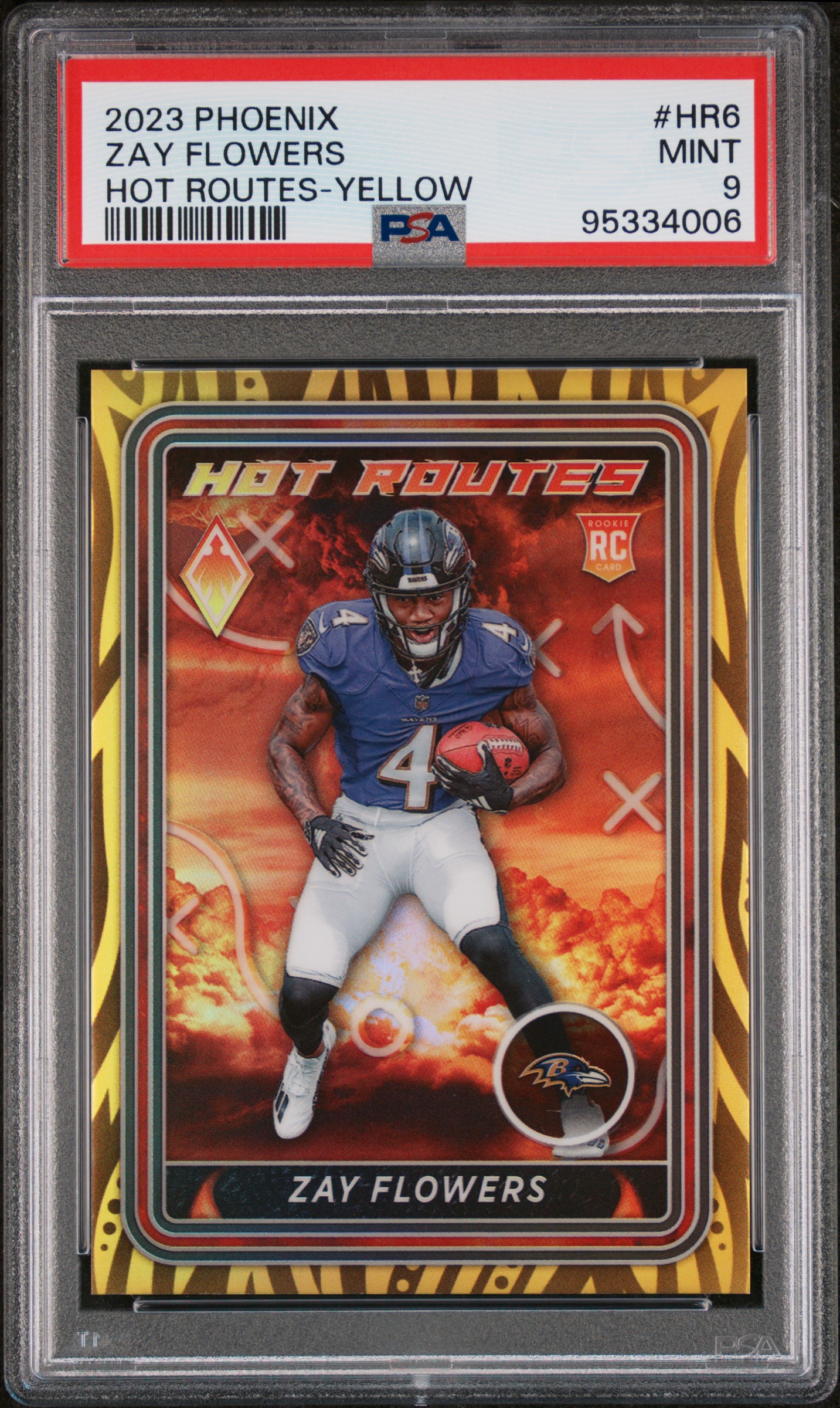 Zay Flowers 2023 Panini Phoenix Hot Routes Yellow #6 RC #1/75 (PSA 9)