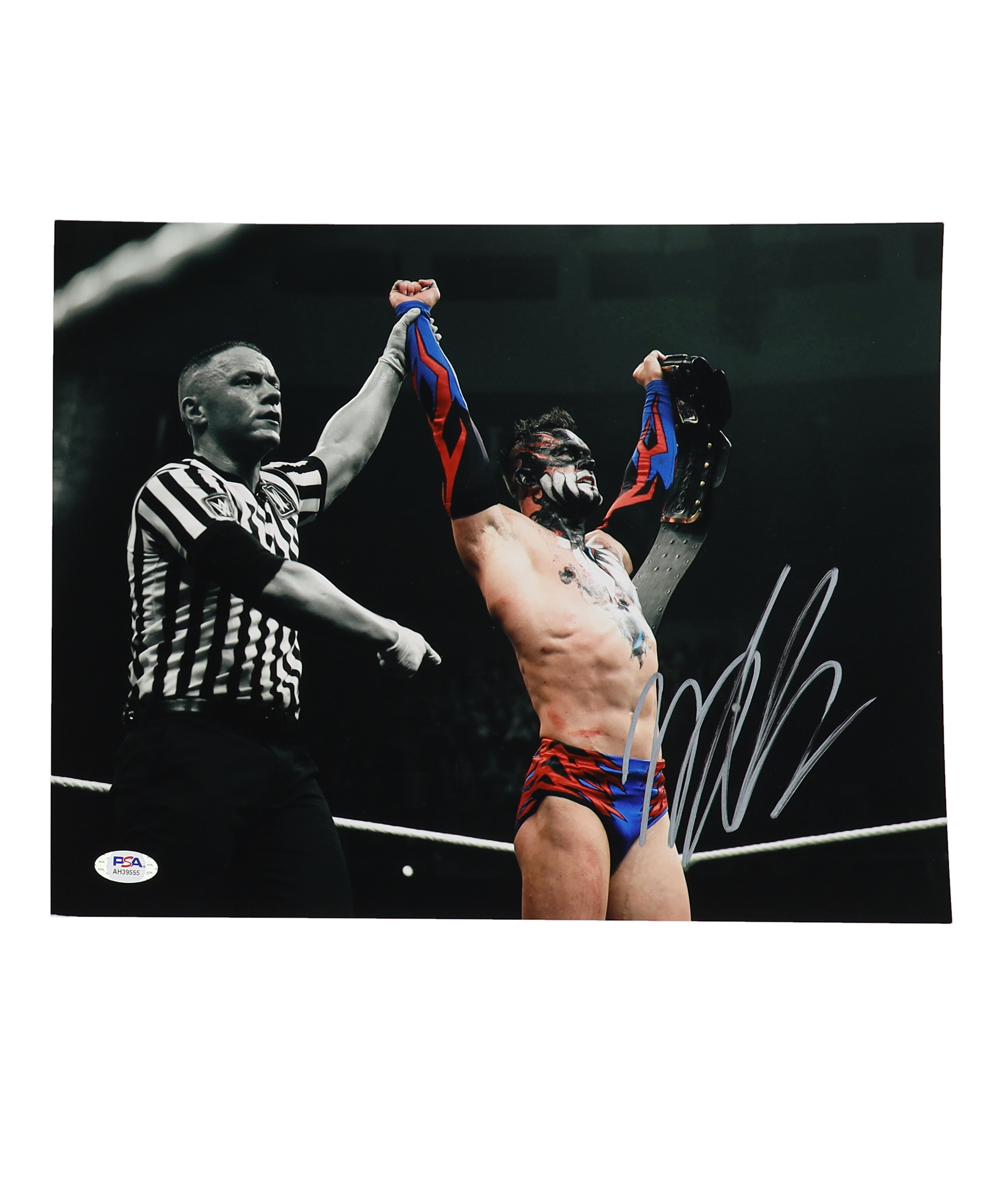 Photo measures 11" x 17" in size and has been hand-signed by Finn Balor.
