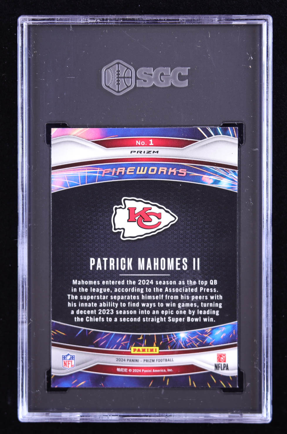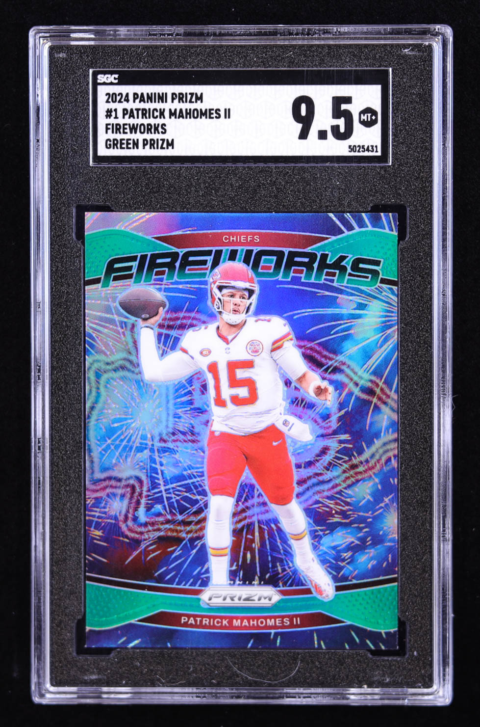 Patrick Mahomes II 2024 Panini Prizm Fireworks Prizms Green #1 (SGC 9.5)