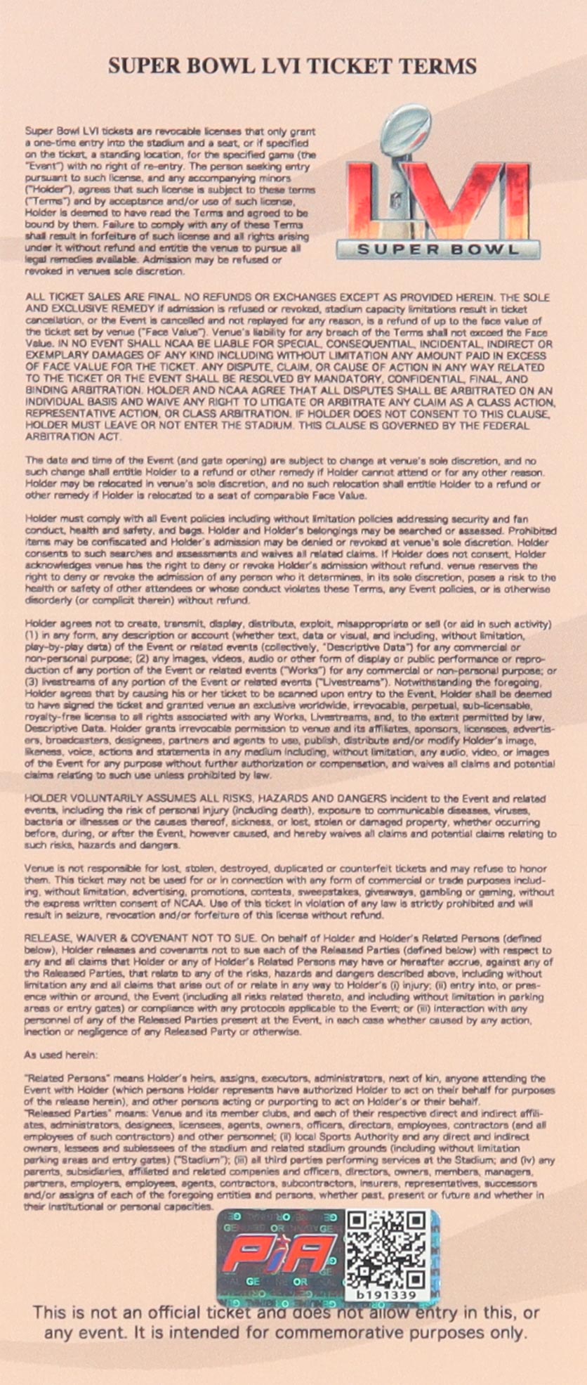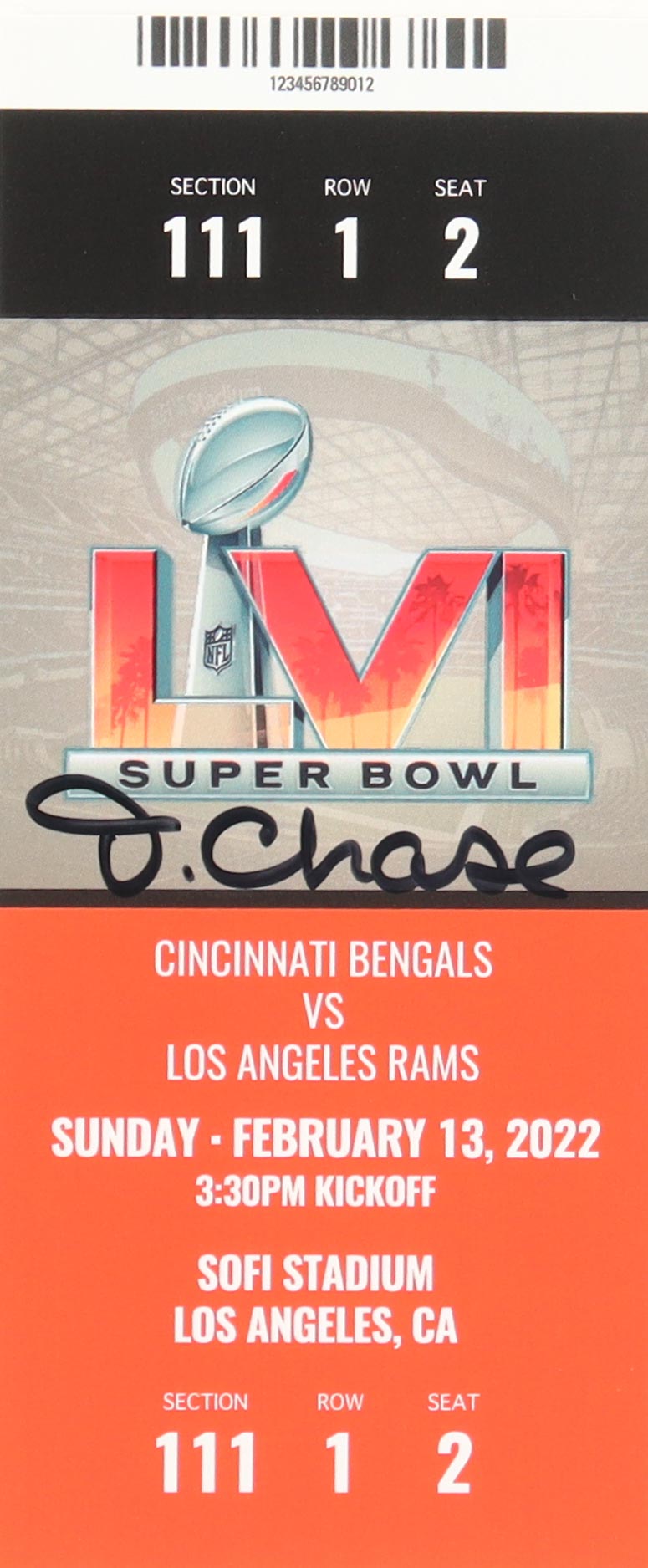 Ja'Marr Chase Signed Super Bowl LVI Commemorative Game Ticket (PIA)