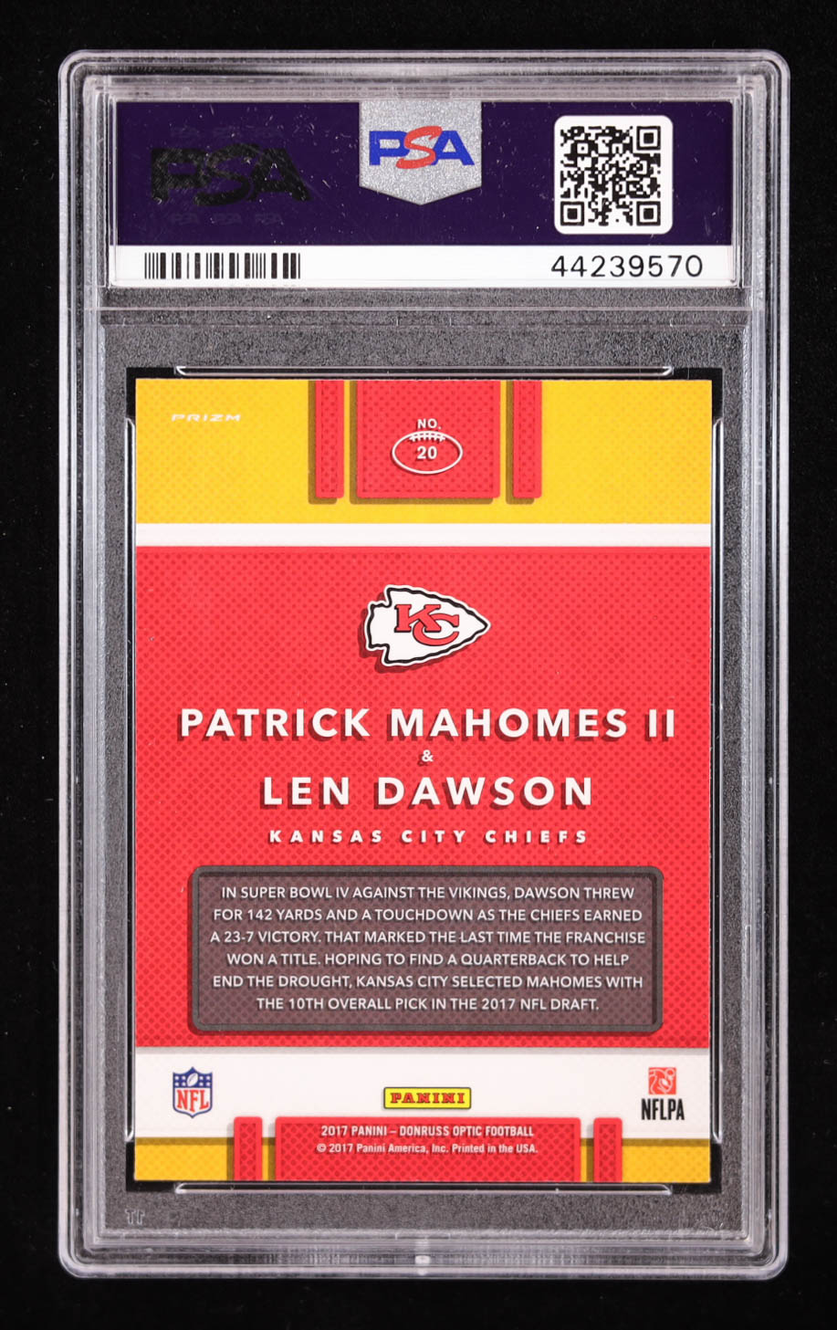 Patrick Mahomes II RC / Len Dawson 2017 Donruss Optic Illusions #20 (PSA 10)