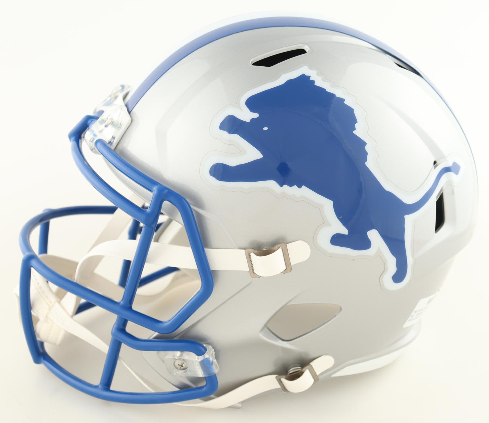 Official Riddell Detroit Lions Throwback Full-Size Replica Speed Helmet has been hand-signed by Barry Sanders.