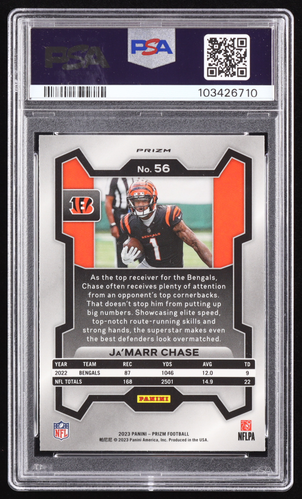 Ja'Marr Chase 2023 Panini Prizm Prizms Red Sparkle #56 (PSA 10)