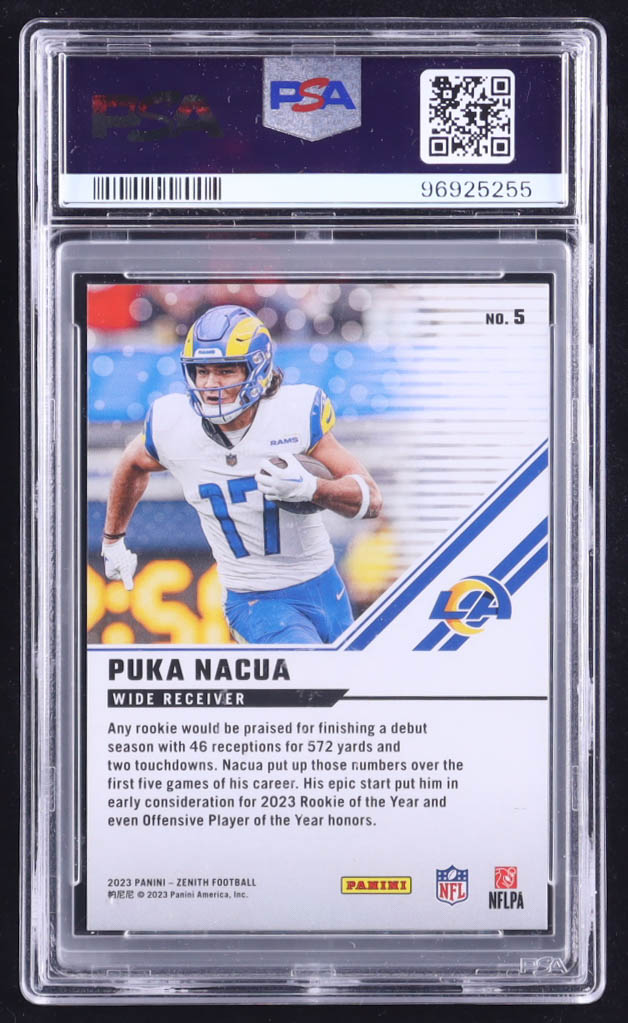 Puka Nacua 2023 Zenith Epix Purple Moment #5 RC #5/5 (PSA 9)