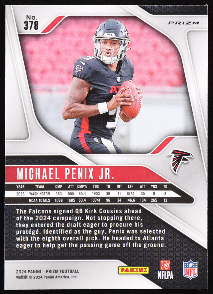 Michael Penix Jr. 2024 Panini Prizm Prizms Silver #378 RC