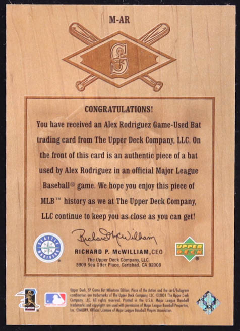 Alex Rodriguez 2001 SP Game Bat Milestone Piece of Action Milestone #AR Mariners