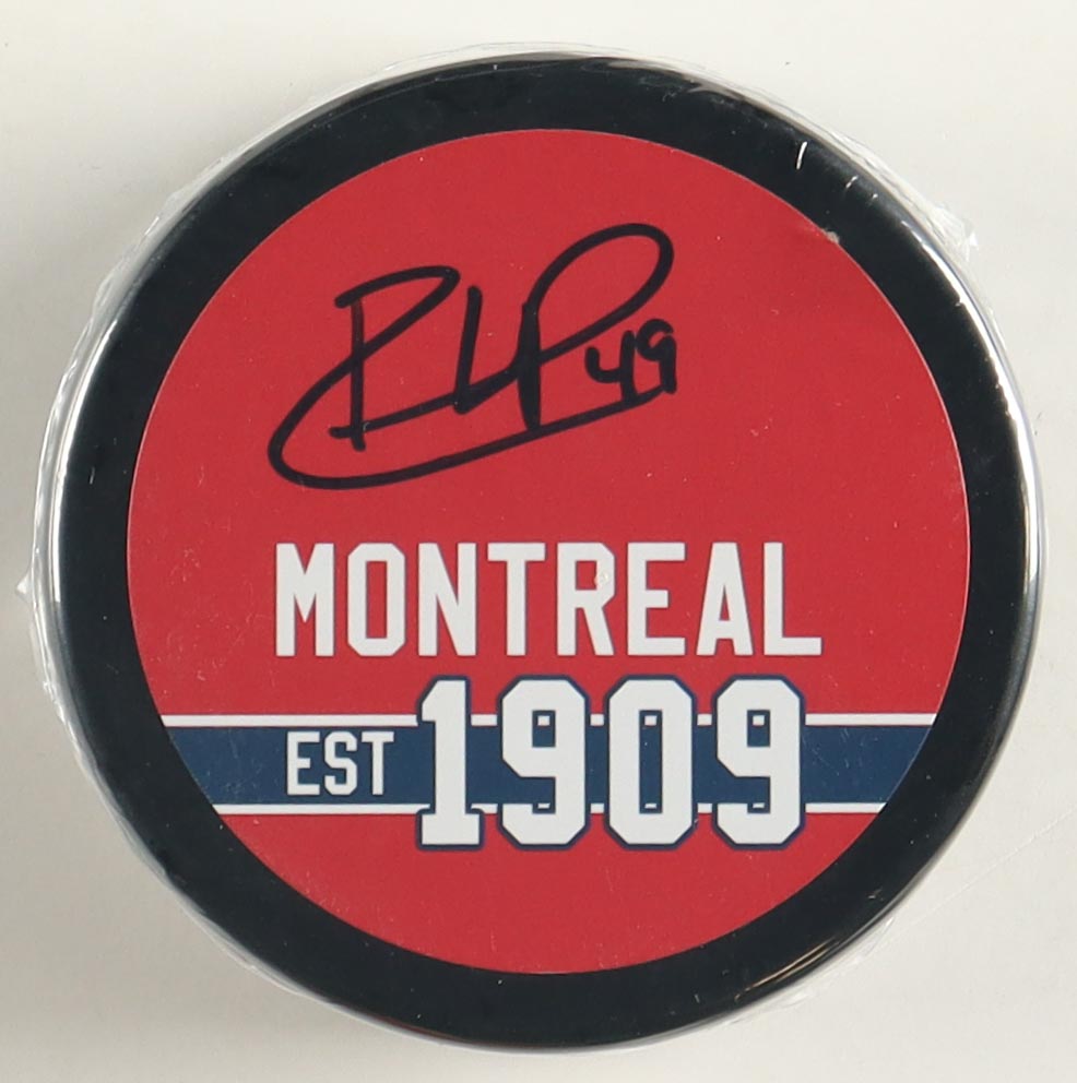 Montreal Canadiens Logo Hockey Puck. Hand-signed by Rafael Harvey-Pinard.