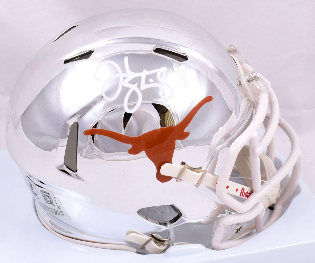 Riddell Texas Longhorns Chrome Alternate Speed Mini Helmet has been hand-signed by Jordan Shipley.