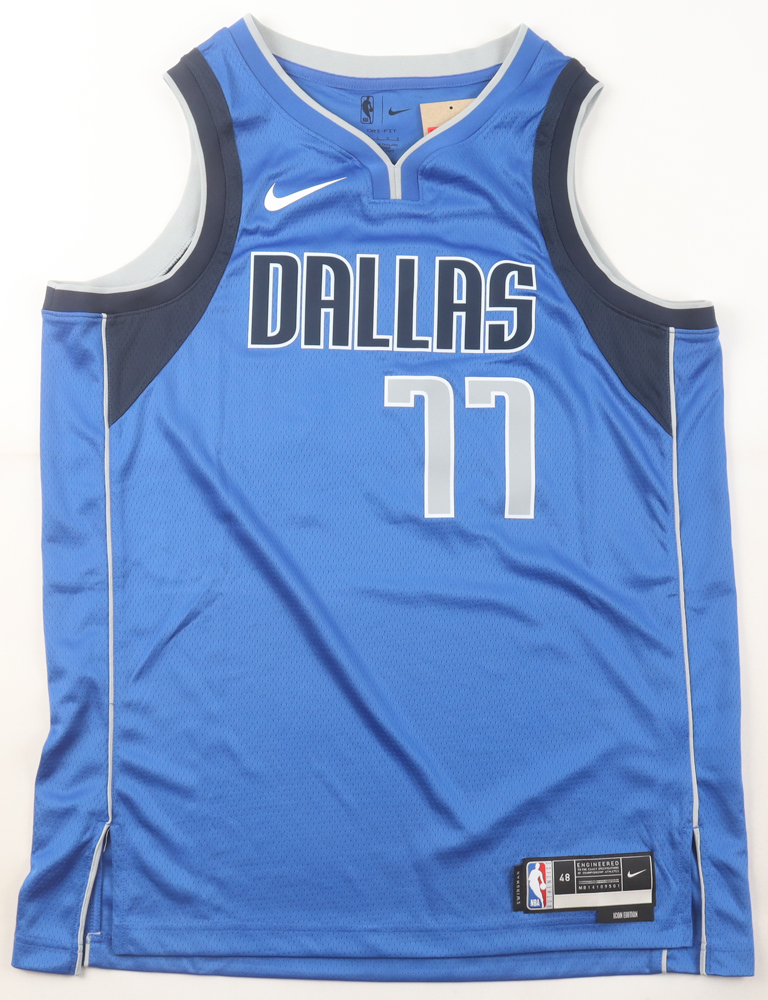 Authentic Nike Swingman jersey with everything pressed on, size 48. Hand-signed by Luka Doncic (Dallas Mavericks).