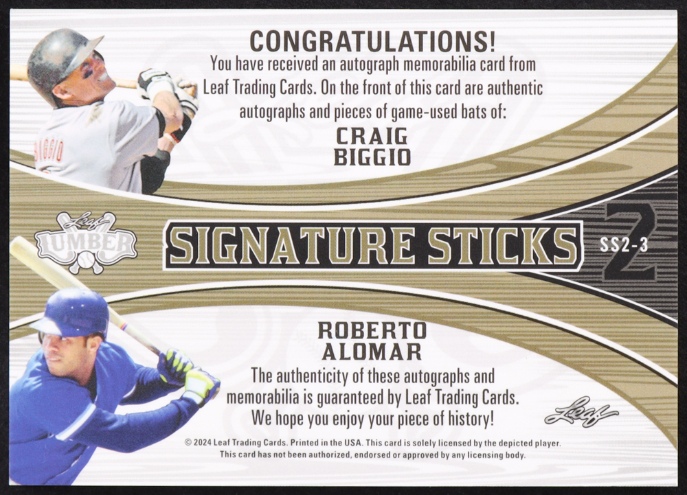 Craig Biggio / Roberto Alomar 2024 Leaf Lumber Signature Sticks 2 #SS23 #1/2