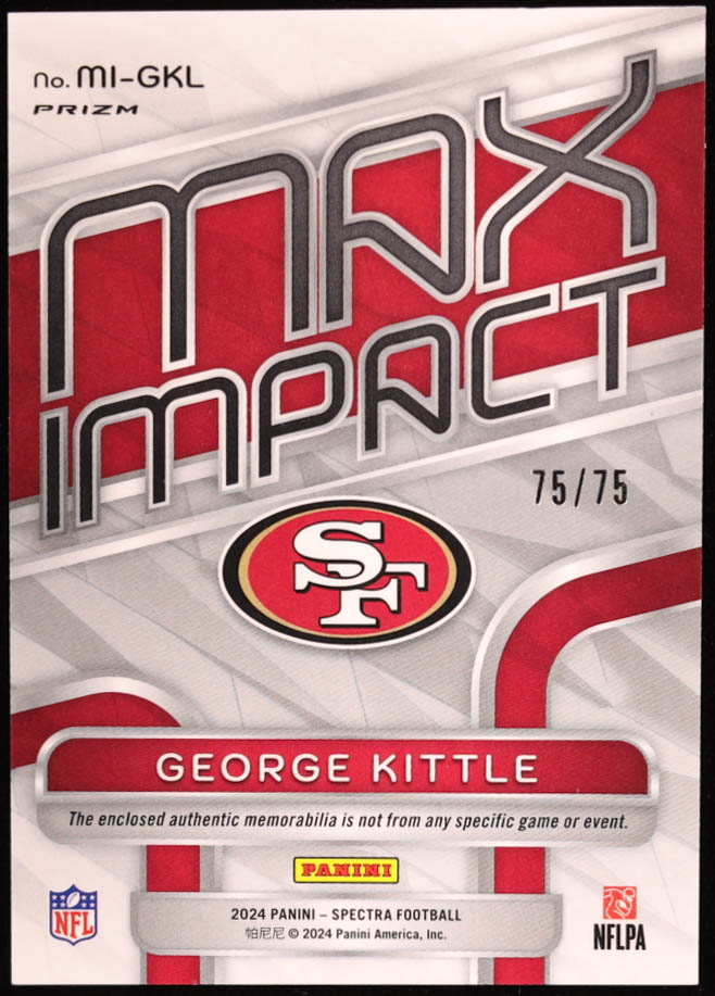 George Kittle 2024 Panini Spectra Max Impact Material Hyper Prizms #23 #75/75