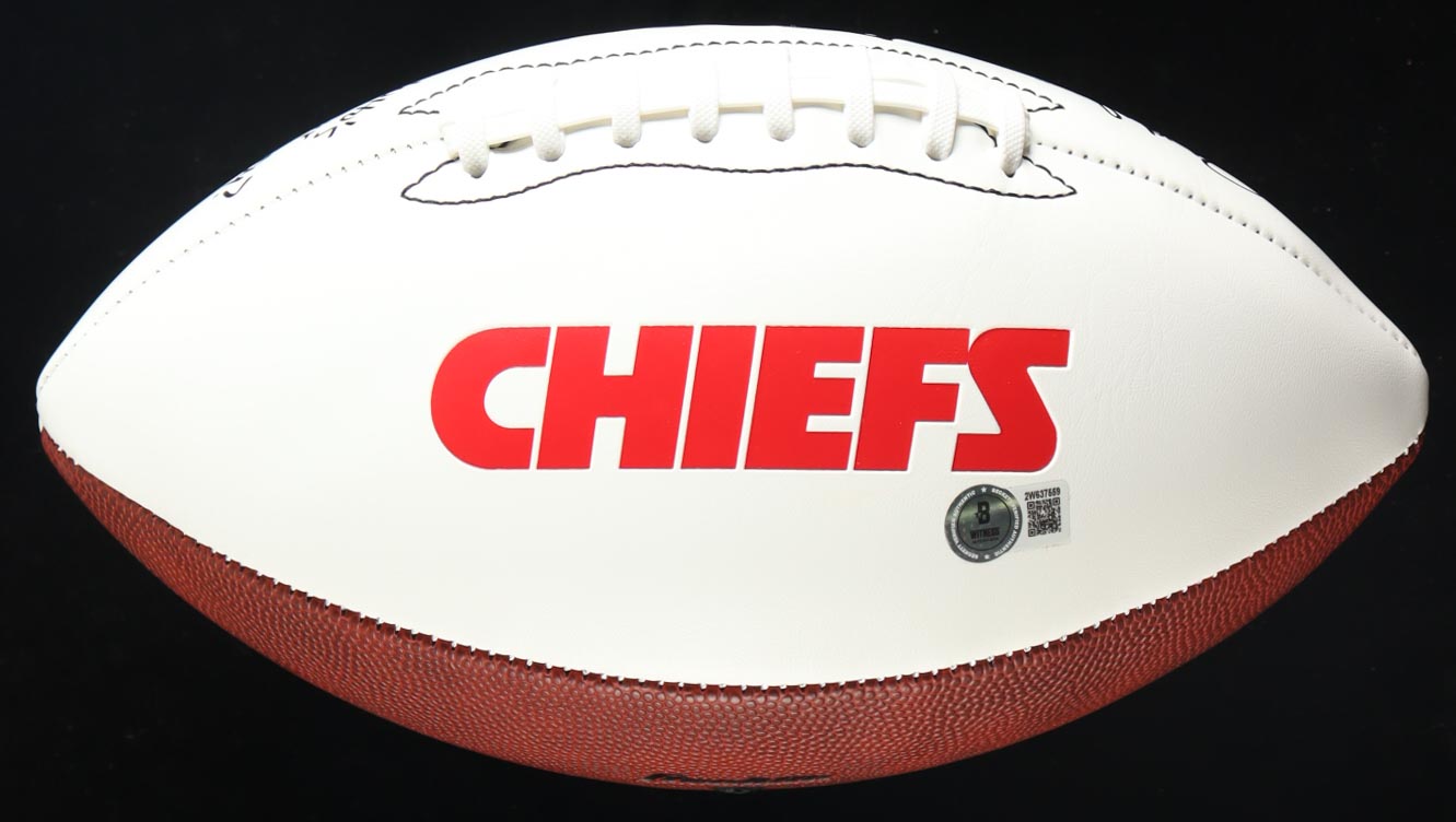 Kansas City Chiefs logo football. Hand-signed and inscribed by Pat Mahomes (Minnesota Twins).