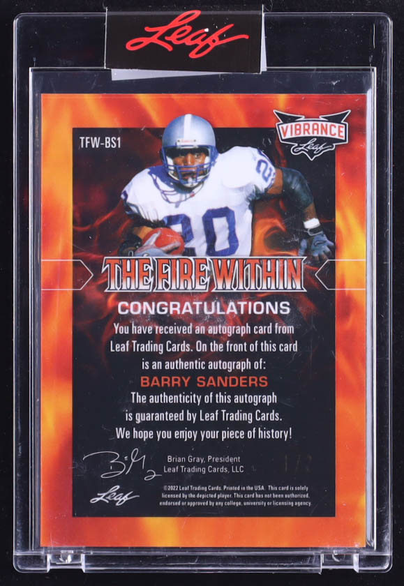 Barry Sanders 2022 Leaf Vibrance The Fire Within Autographs Silver #TFWBS1 #1/2