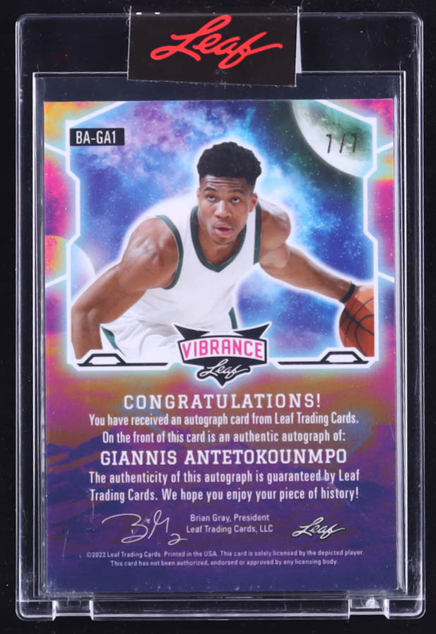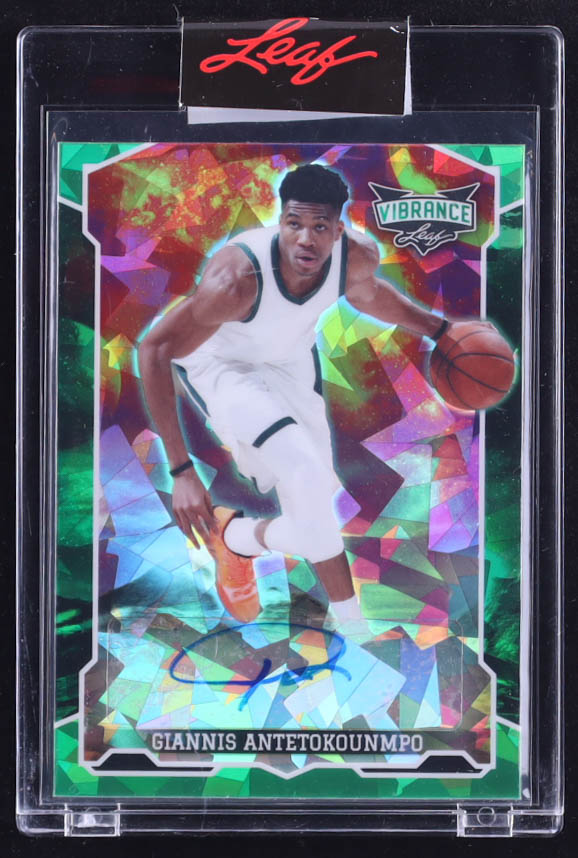 Giannis Antetokounmpo 2022 Leaf Vibrance Autographs Crystals Green #BAGA1 #7/7
