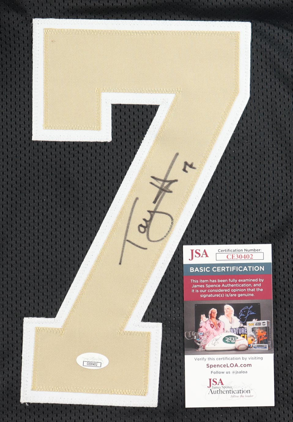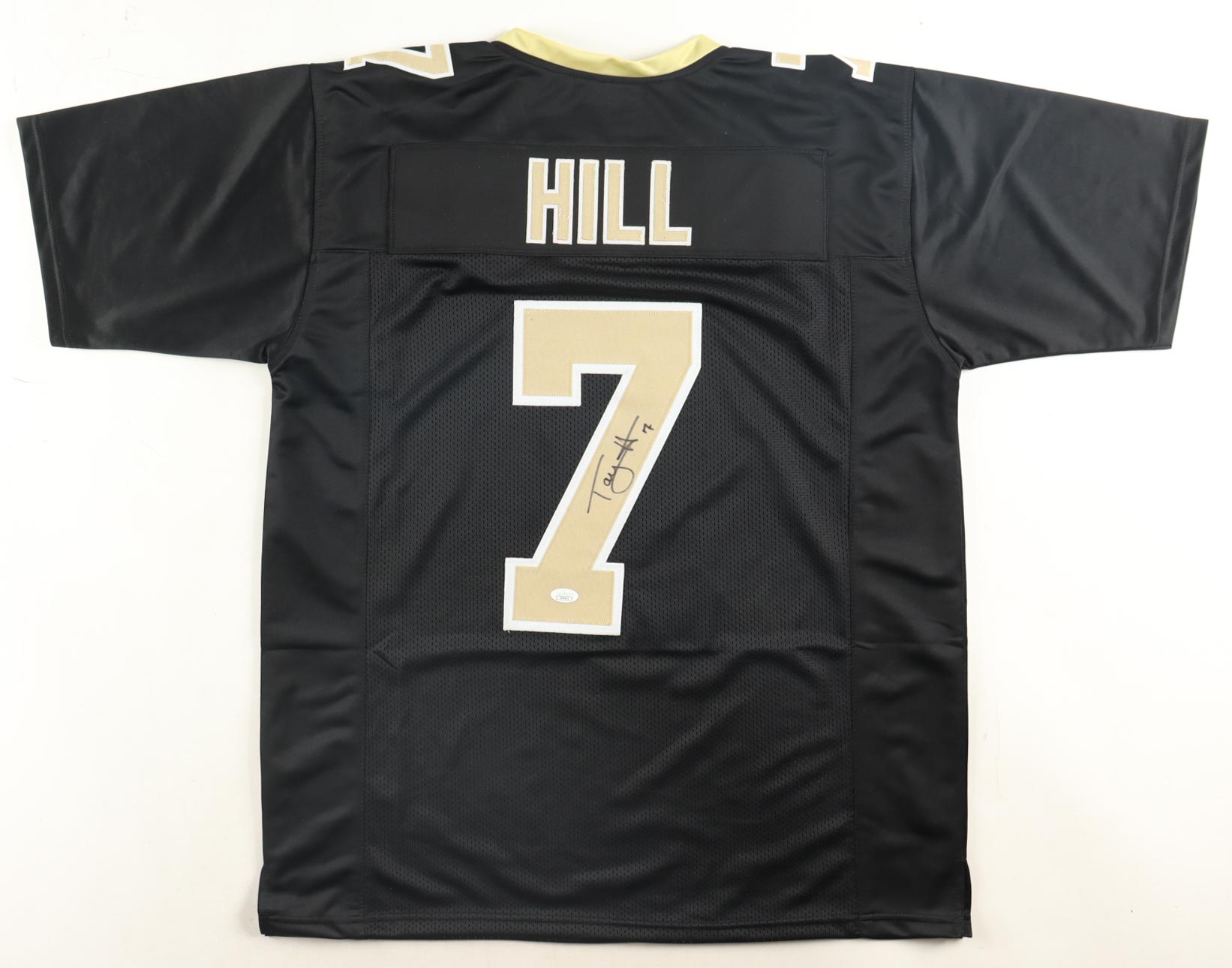 Jersey is size XL. Everything sewn on. Hand-signed by Taysom Hill.