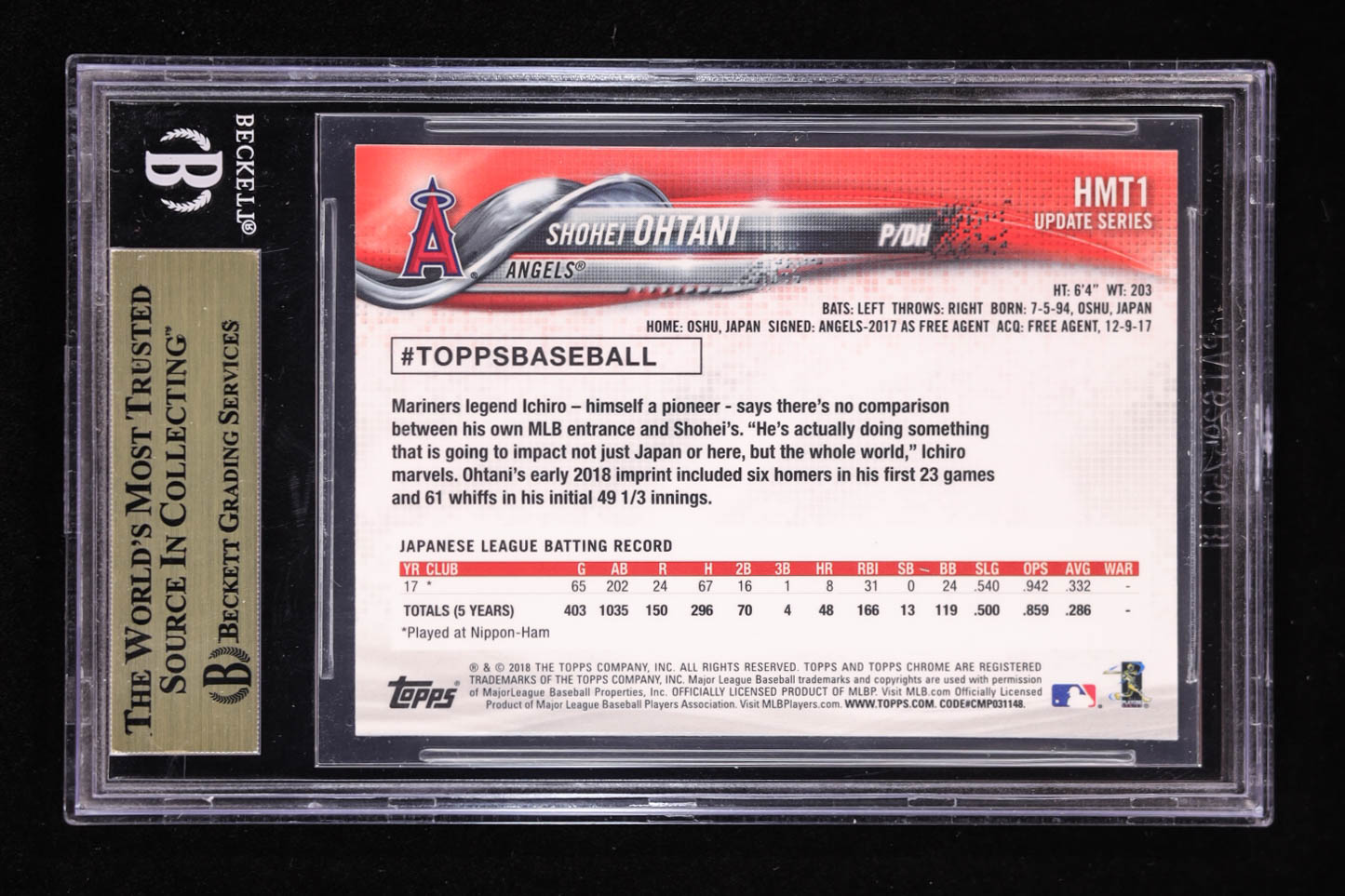 Shohei Ohtani 2018 Topps Chrome Update #HMT1 RC (BGS 9.5)