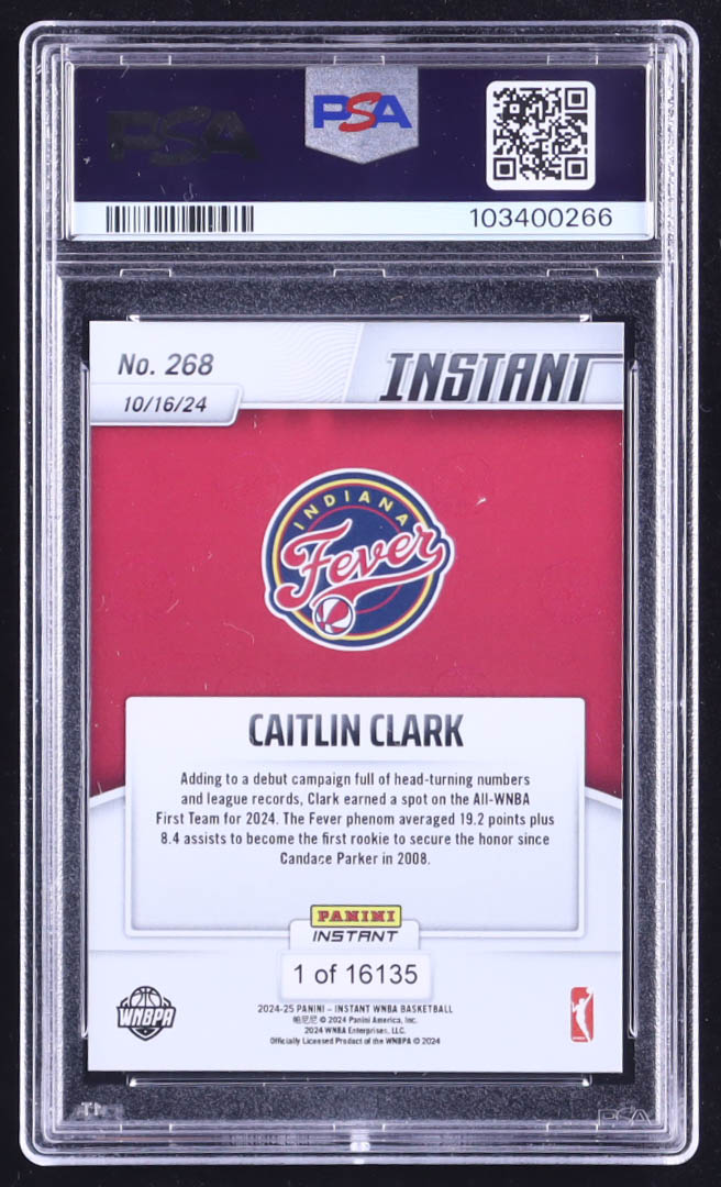 Caitlin Clark 2024 Panini Instant WNBA RC #268 (PSA 10)