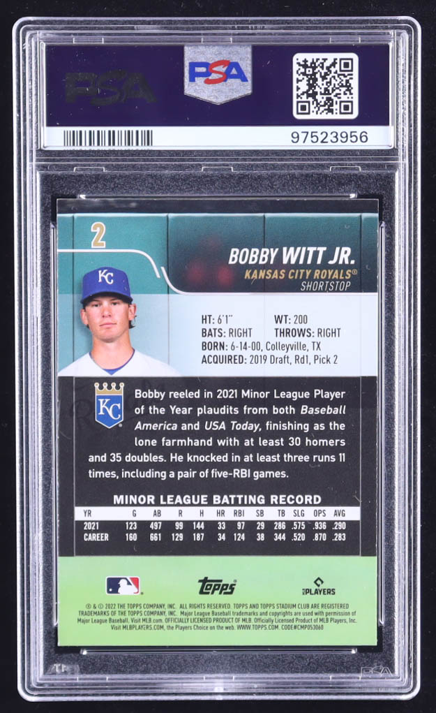 Bobby Witt Jr. 2022 Topps Stadium Club #2 RC (PSA 9)