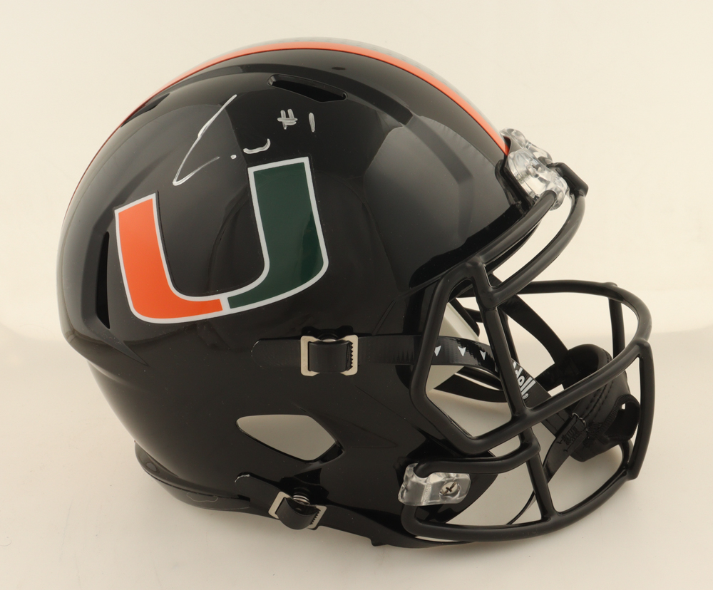 Riddell Miami Hurricanes full-size replica speed helmet. Hand-signed by Cam Ward.