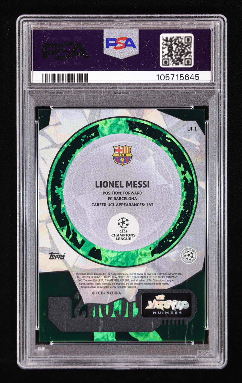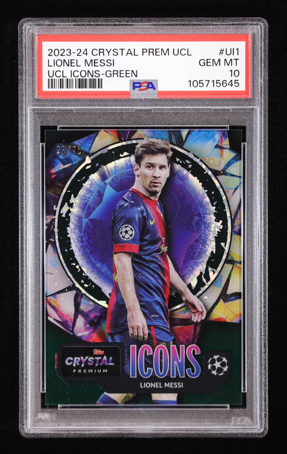Lionel Messi 2023-24 Crystal Premium UCL Icons Green #UI1 #26/75 (PSA 10)