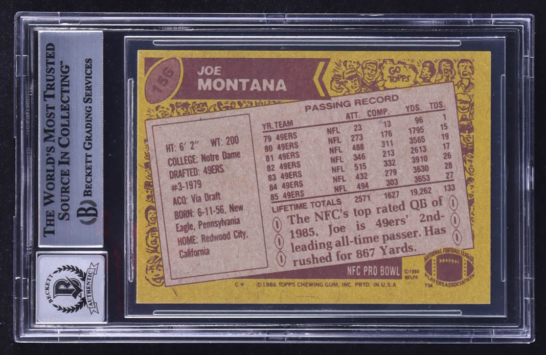 Joe Montana Signed 1986 Topps #156 (BGS | Autograph Graded 10)