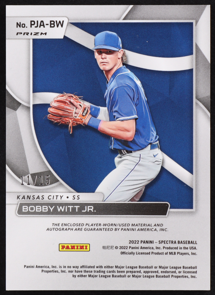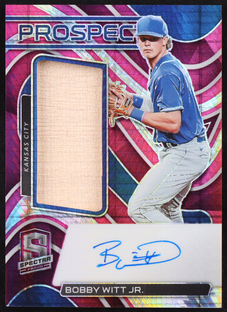 Bobby Witt Jr. 2022 Panini Chronicles Spectra Prospect Jersey Autographs Neon Pink #15 RC #11/15