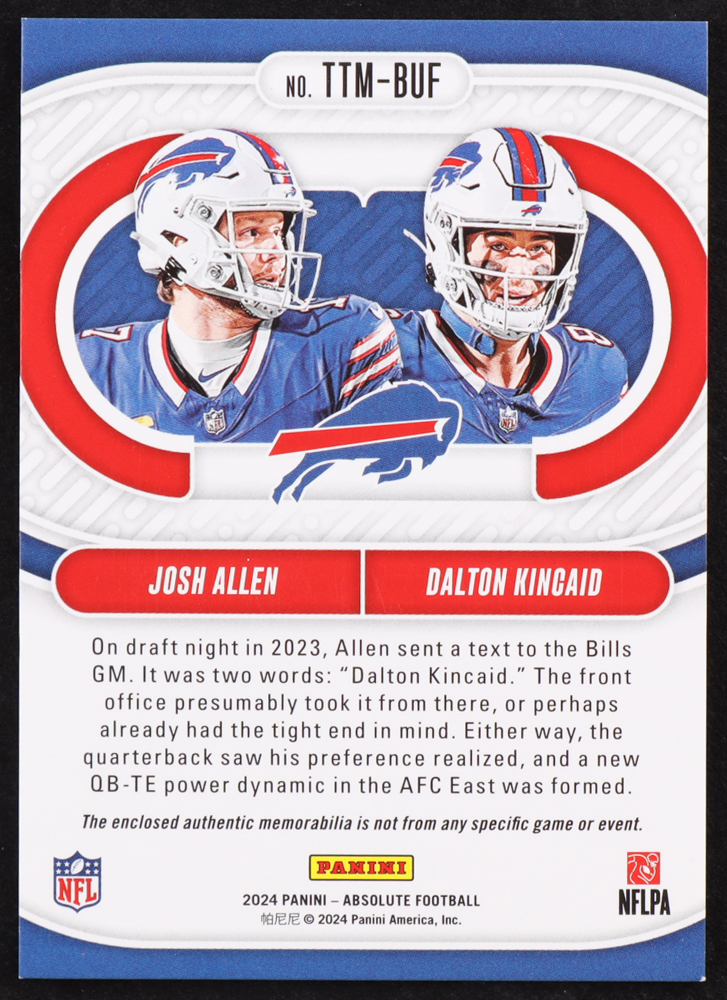 Josh Allen / Dalton Kincaid 2024 Absolute Team Tandem Materials #26 #27/199