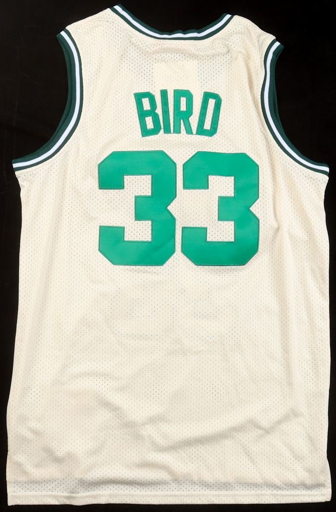 Mitchell & Ness jersey with everything sewn on, size XL. Hand-signed by Larry Bird (Boston Celtics, HOF).