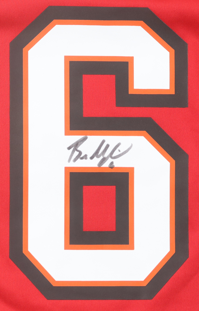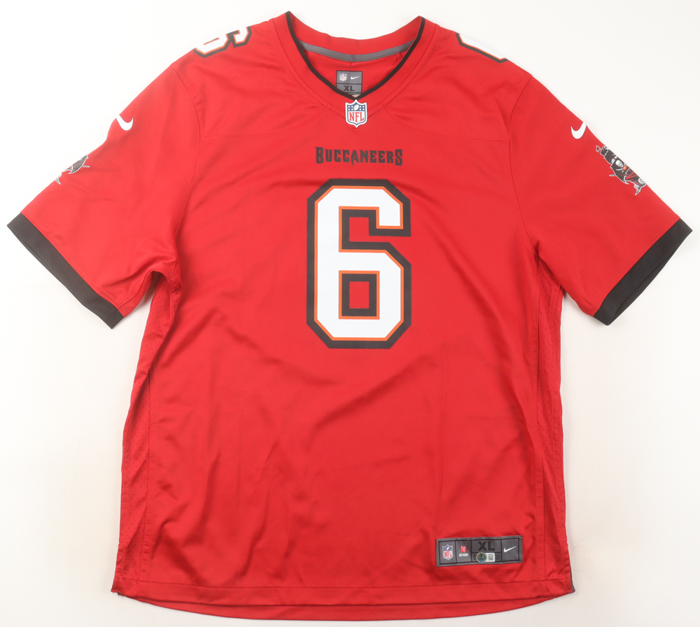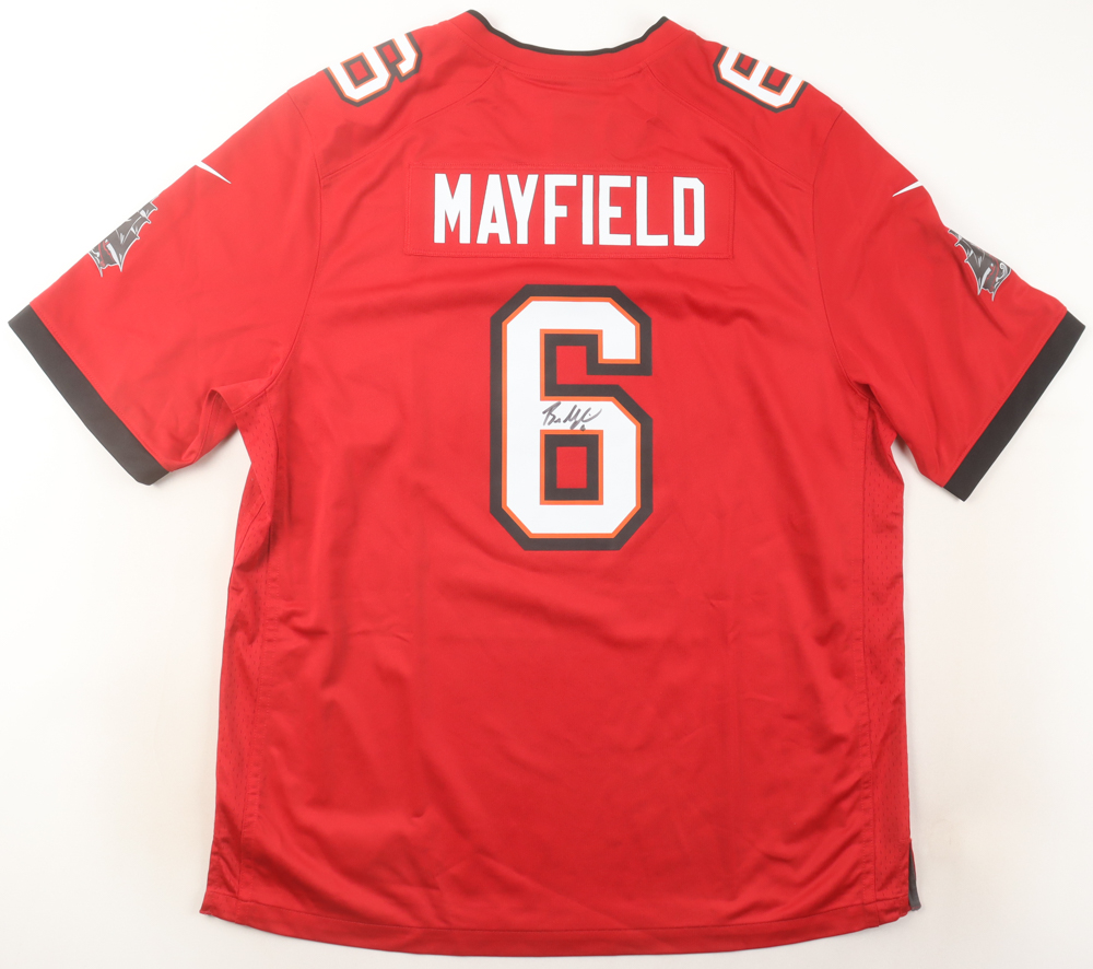 Nike jersey with everything pressed on, size XL. Hand-signed by Baker Mayfield (Tampa Bay Buccaneers).