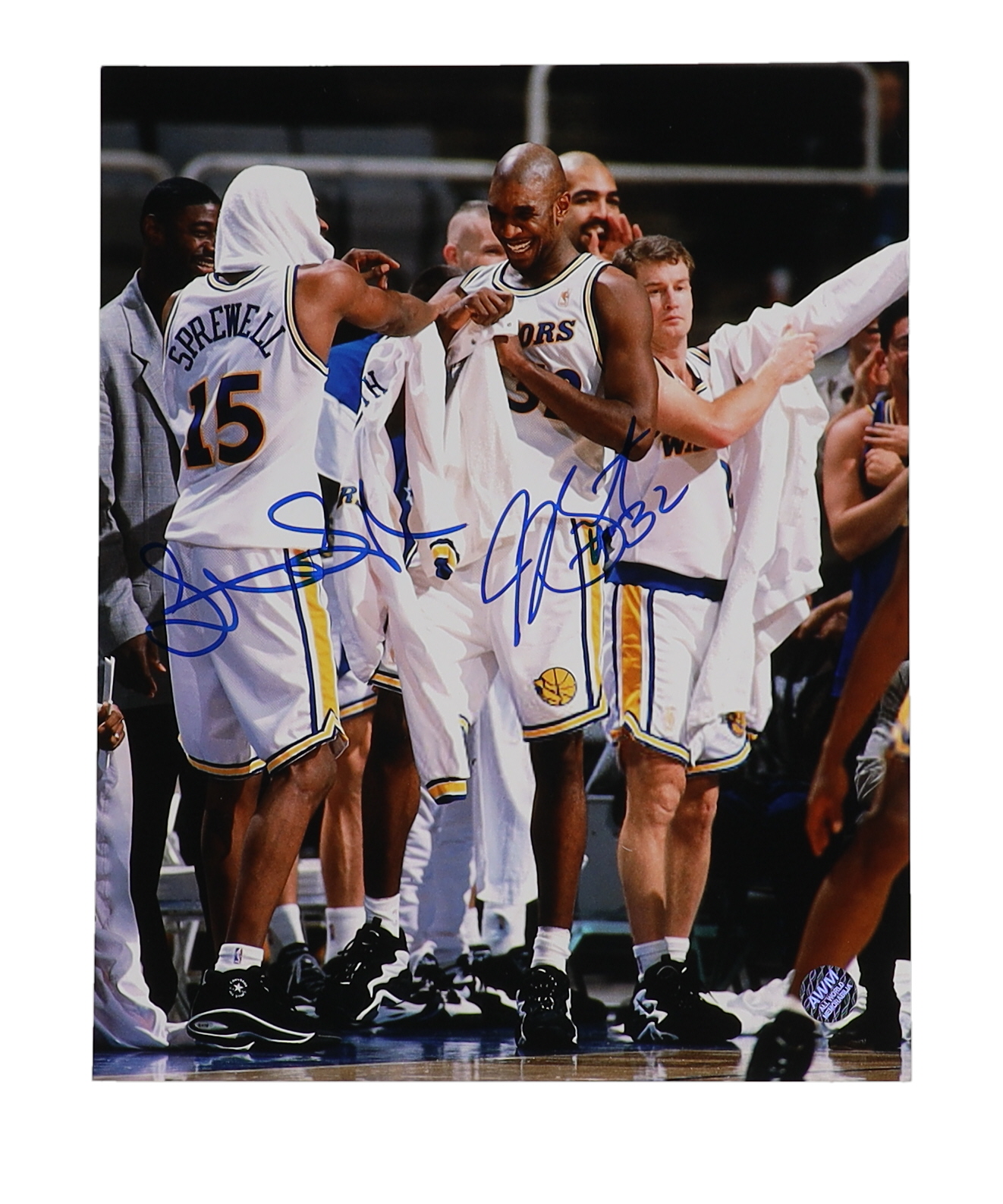 Photo measures approximately 8" x 10" in size and has been hand-signed by Lattrell Sprewell and Joe Smith (Golden State Warriors).
