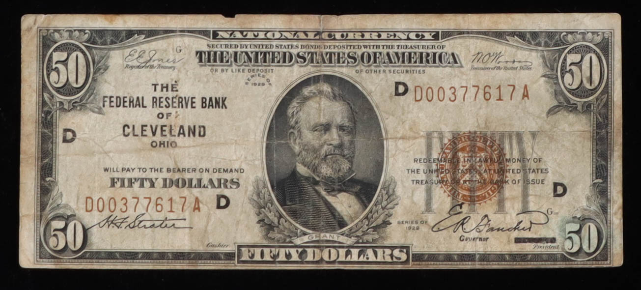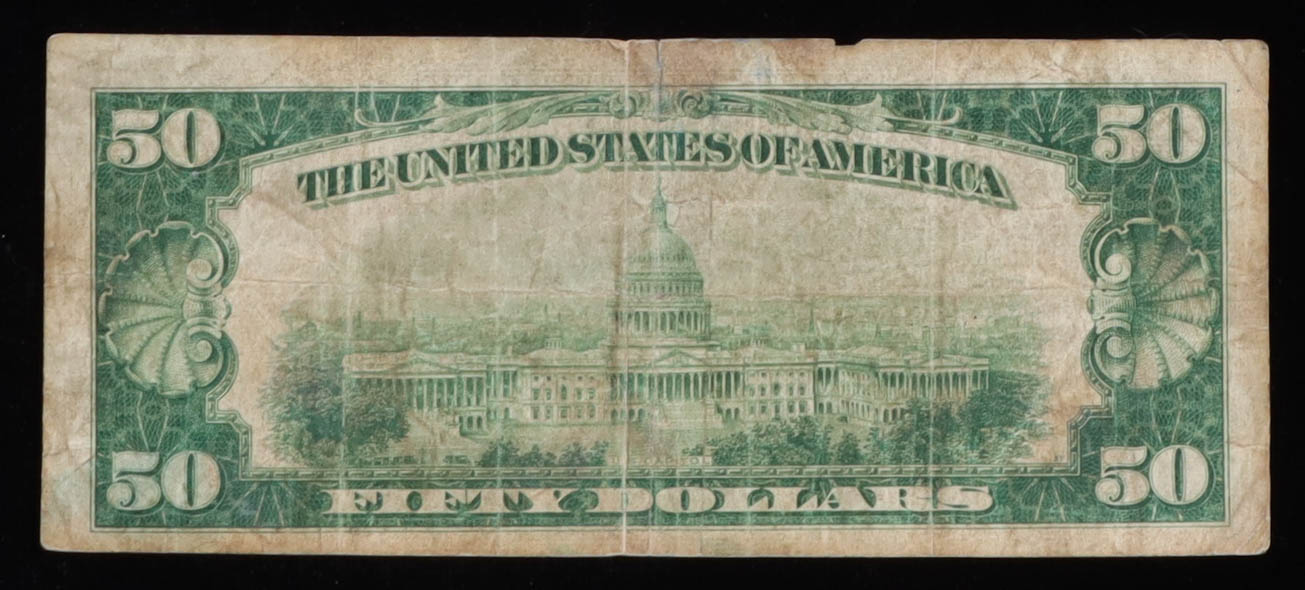 1929 United States $50 Fifty Dollar National Currency Bank Note - Brown Seal