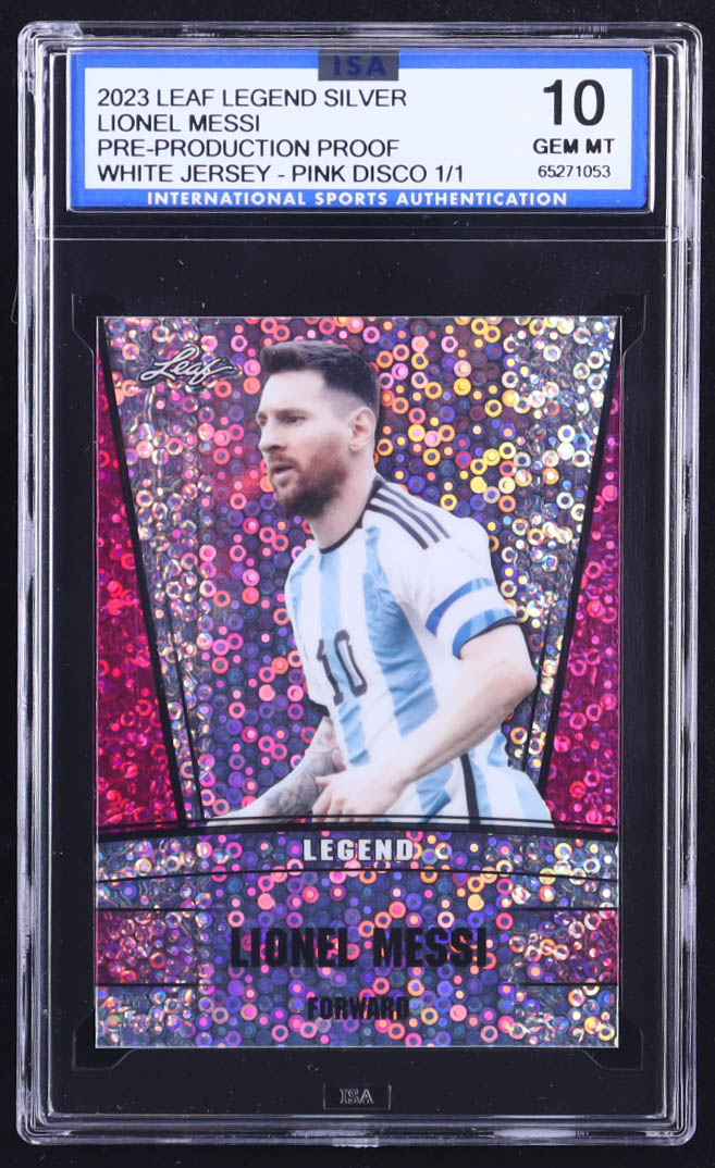 Lionel Messi 2023 Leaf Legend Silver Pre-Production Proof Pink Disco #NNO #1/1 (ISA 10)