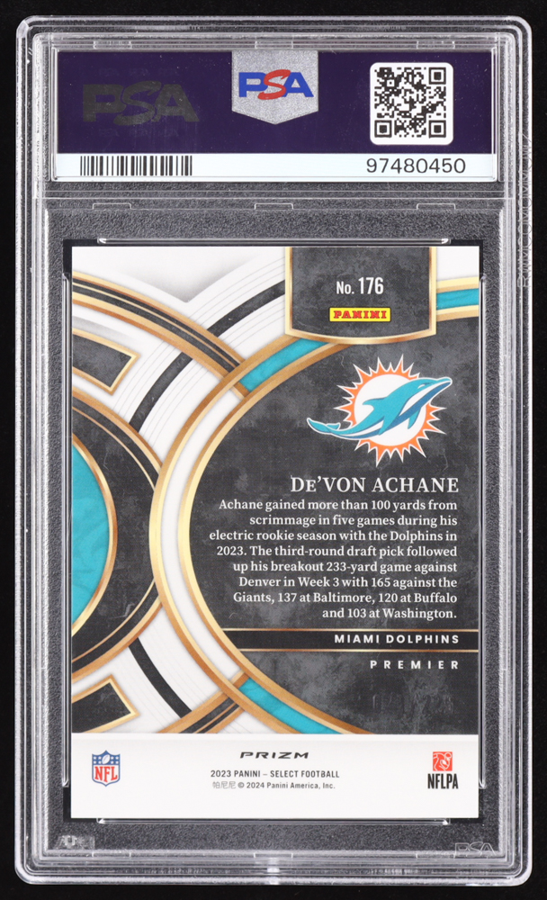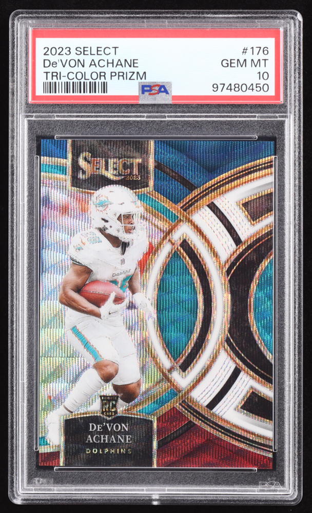 De'Von Achane 2023 Select Prizm Tri Color #176 #023/225 RC (PSA 10)