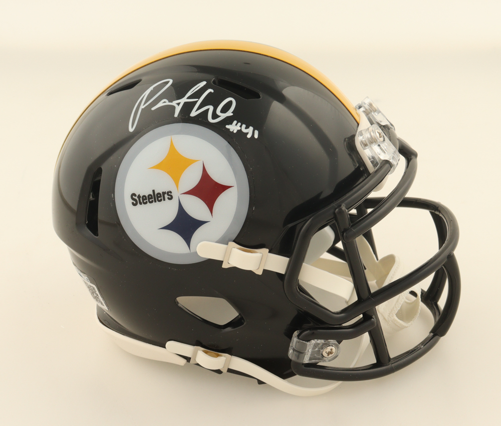 Riddell Pittsburgh Steelers Speed mini helmet has been hand-signed by Payton Wilson.