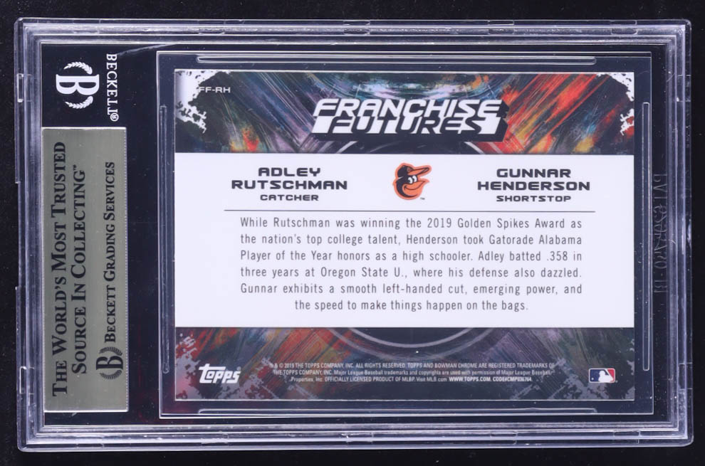 Adley Rutschman / Gunnar Henderson 2019 Bowman Chrome Draft Franchise Futures #FFRH RC (BGS 10)