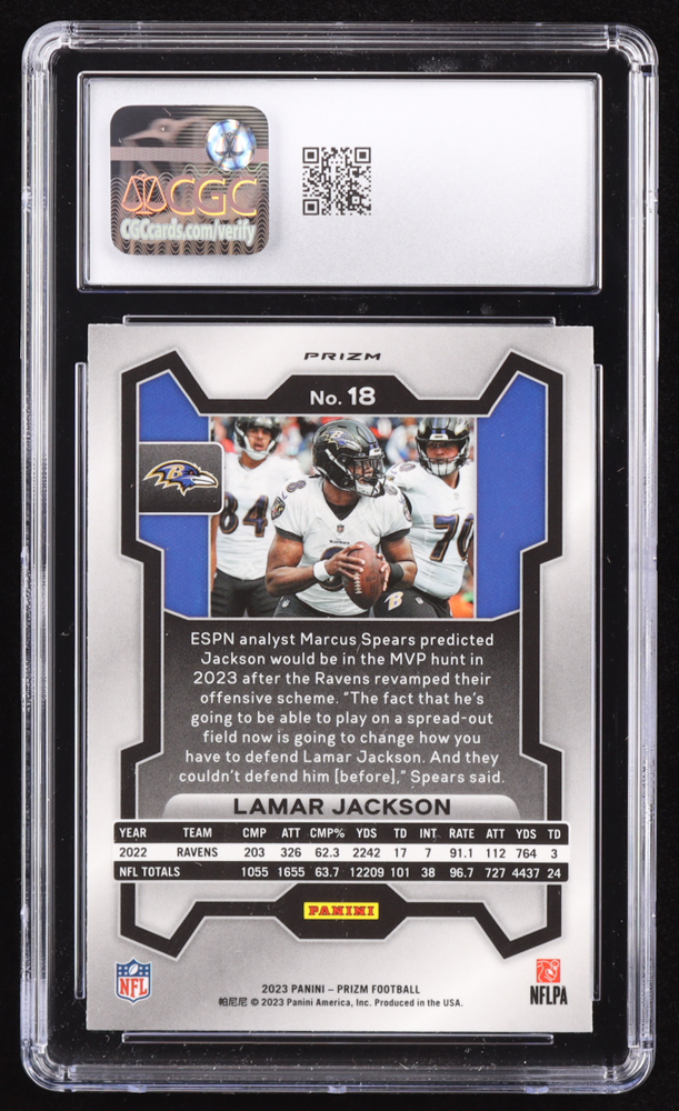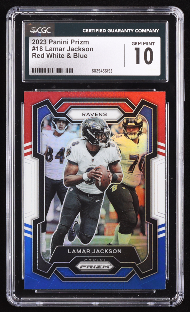Lamar Jackson 2023 Panini Prizm Red White & Blue #18 (CGC 10)