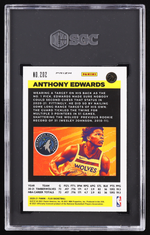 Anthony Edwards 2020-21 Panini Flux Fanatics Cracked Ice Prizm #202 RC (SGC 9.5)