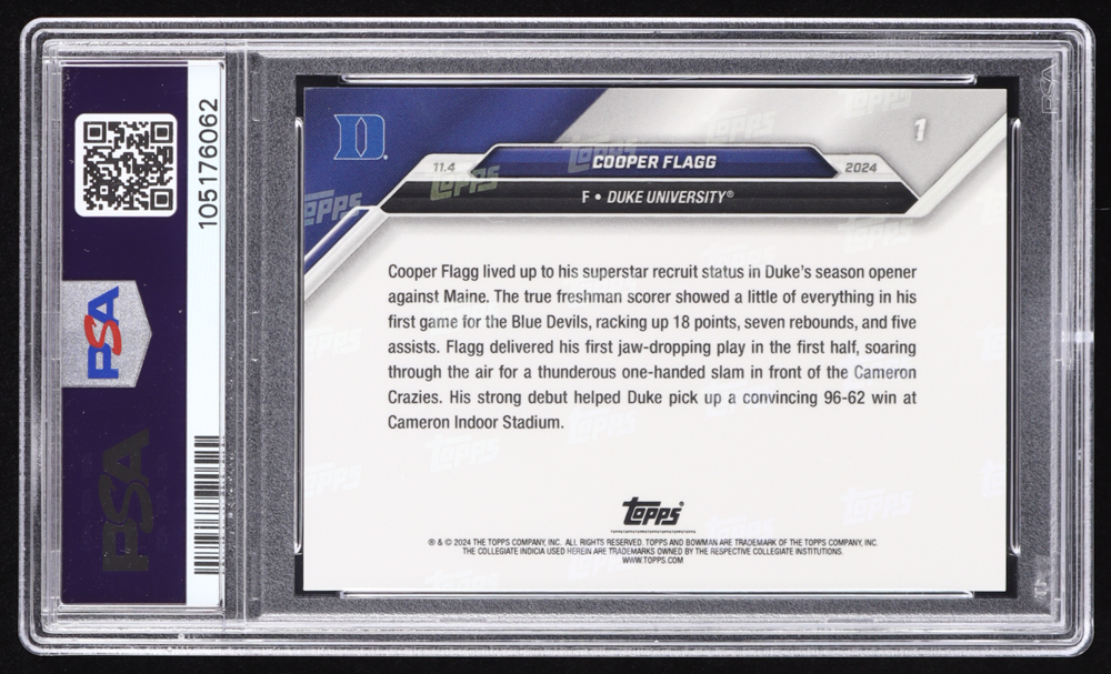 Cooper Flagg 2024-25 Bowman University Now #1 RC (PSA 9)