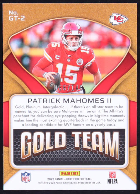 Patrick Mahomes II 2022 Certified Gold Team Mirror Orange #2 #066/149