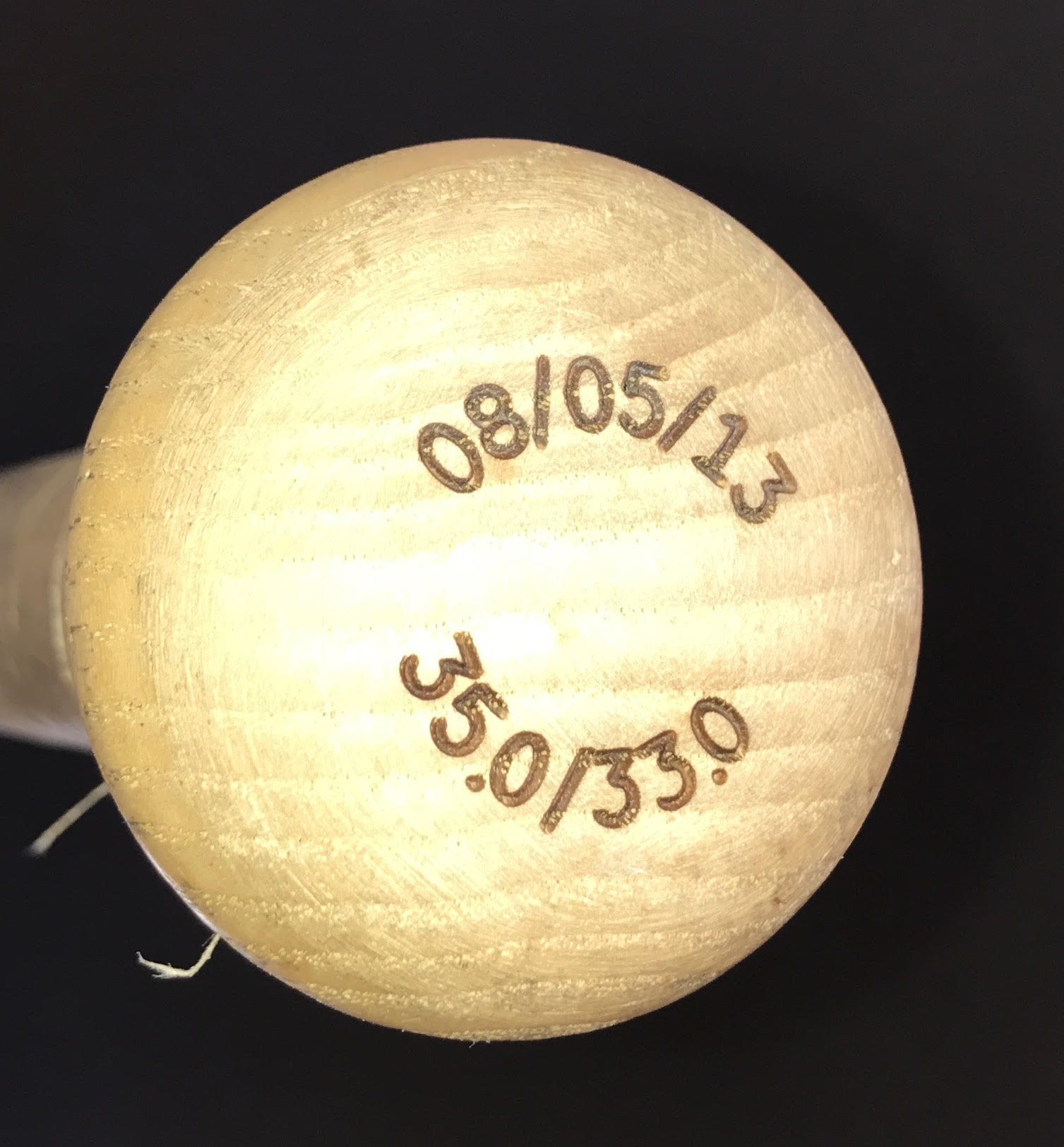 This bat is one of the earliest Judge bats ever to be offered for public sale. The bat is stamped on the knob with a production date of 08/05/13, dating just a couple months past Judge being drafted.