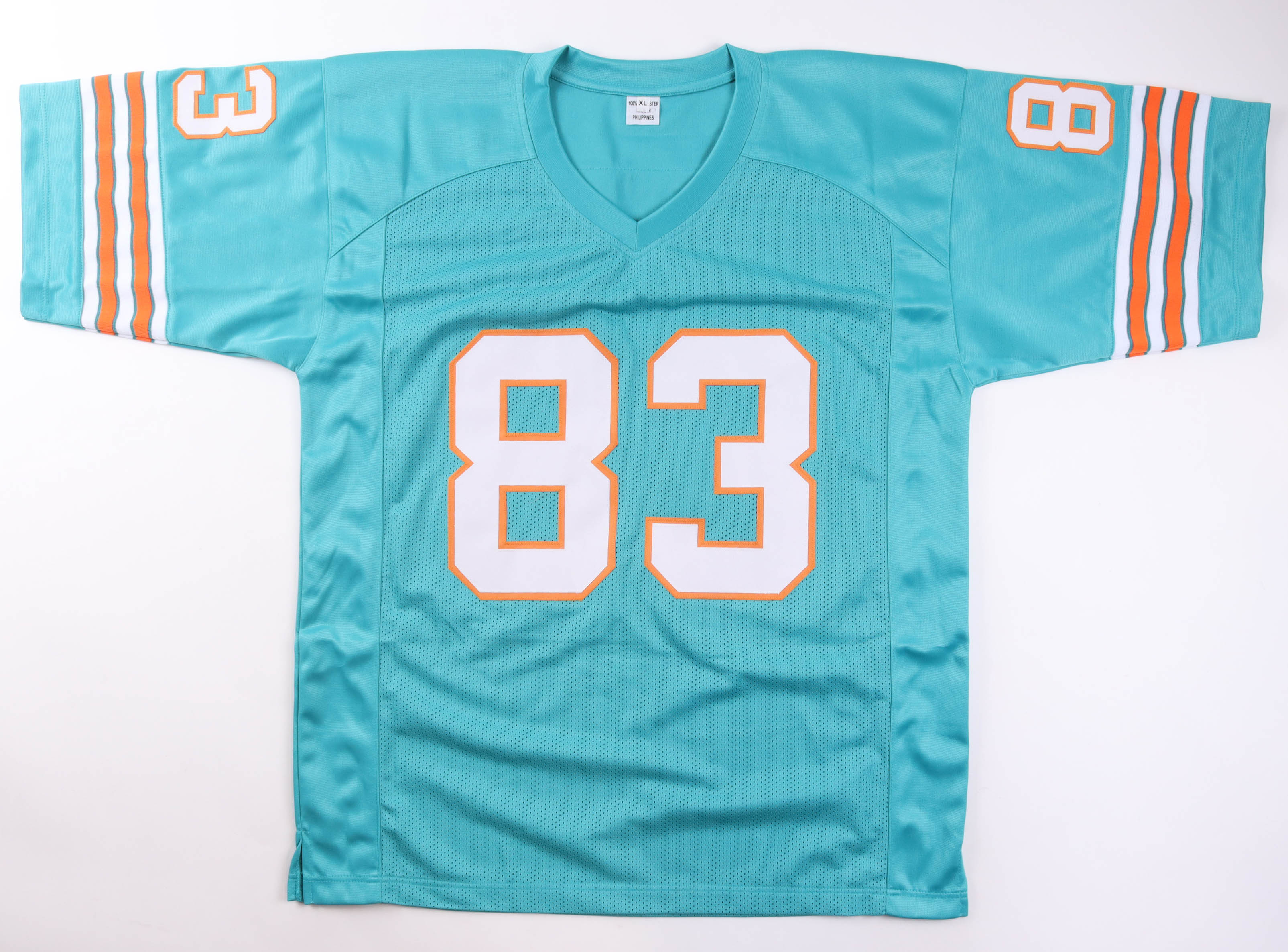 Custom jersey with everything sewn on, size XL. Hand-signed by Mark Clayton.
